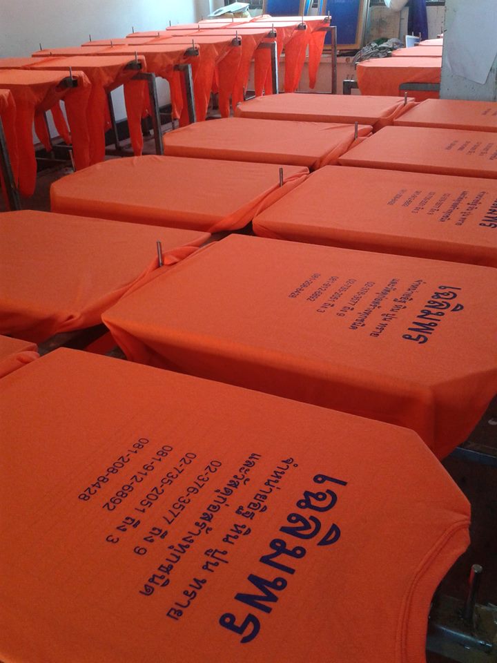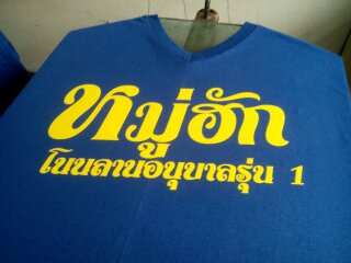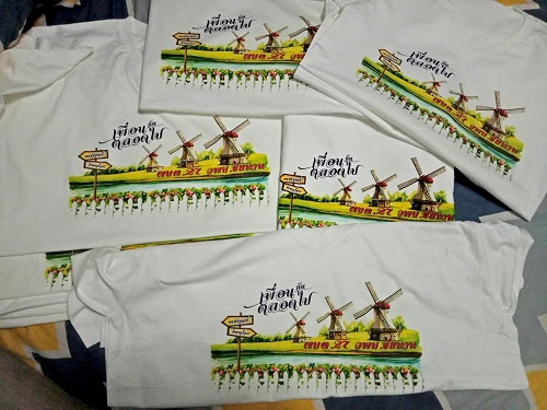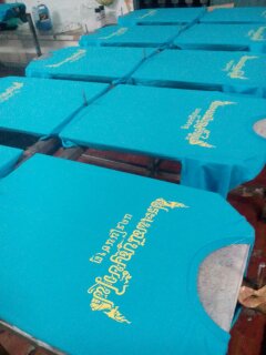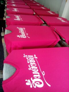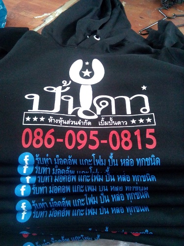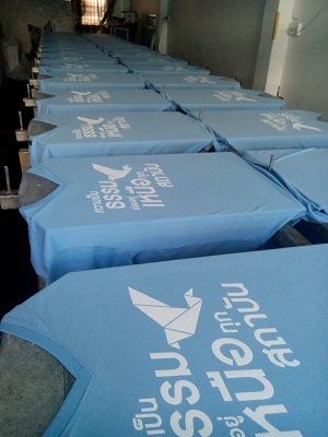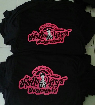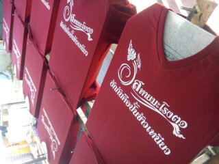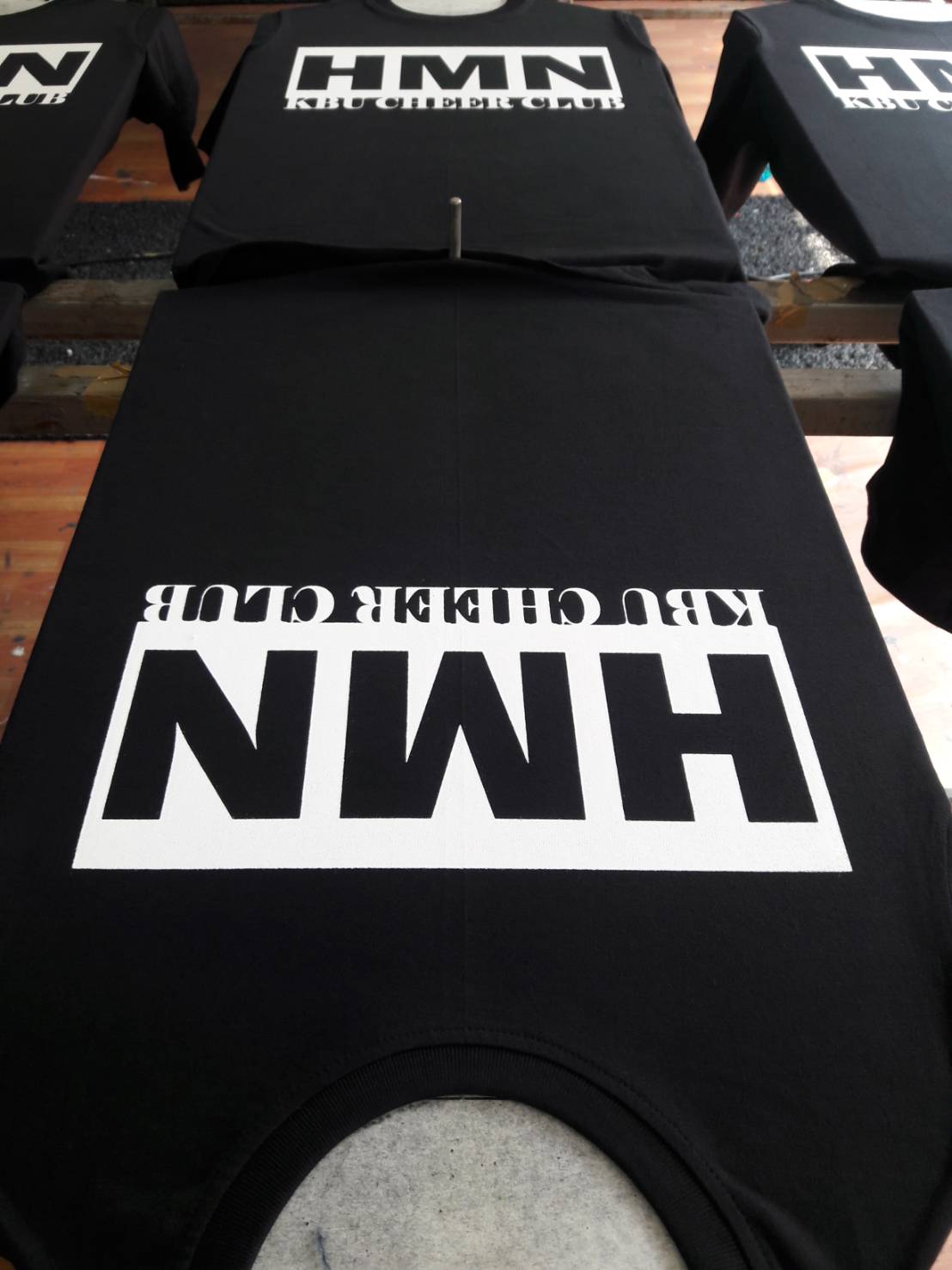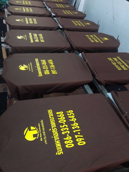 | งานซิลค์สกรีนเป็นงานที่ใช้บล็อกเป็นตัวทำลายตามแบบของลูกค้า เหมาะกับงานจำนวนมาก หากงานจำนวนน้อยจะส่งผลต่อราคาสกรีนต่อตัว ข้อดีคือสกรีนกับผ้าได้หลากหลายชนิด ราคาต่อตัวถูกกว่างานสกรีนประเภทอื่น แต่ทั้งนี้ขึ้นอยู่กับจำนวนผ้าและจำนวนสีตามแบบ ไม่มีขั้นต่ำในการสั่ง |  |