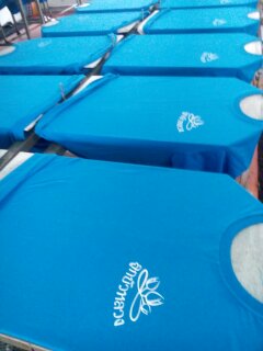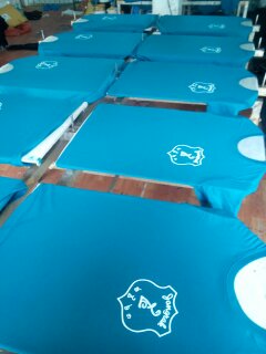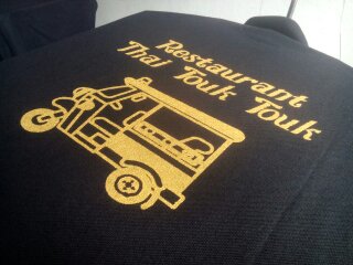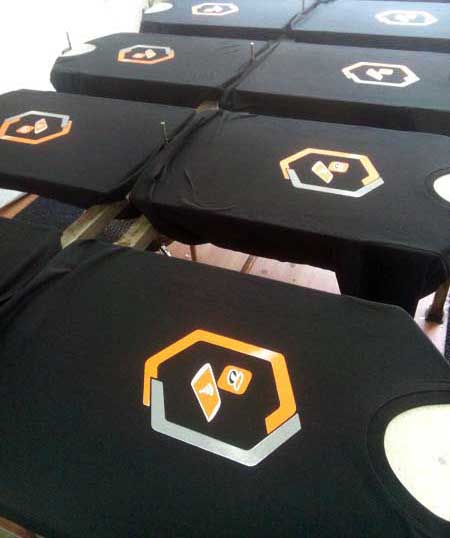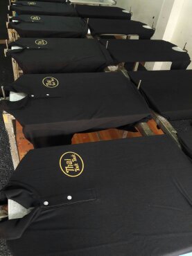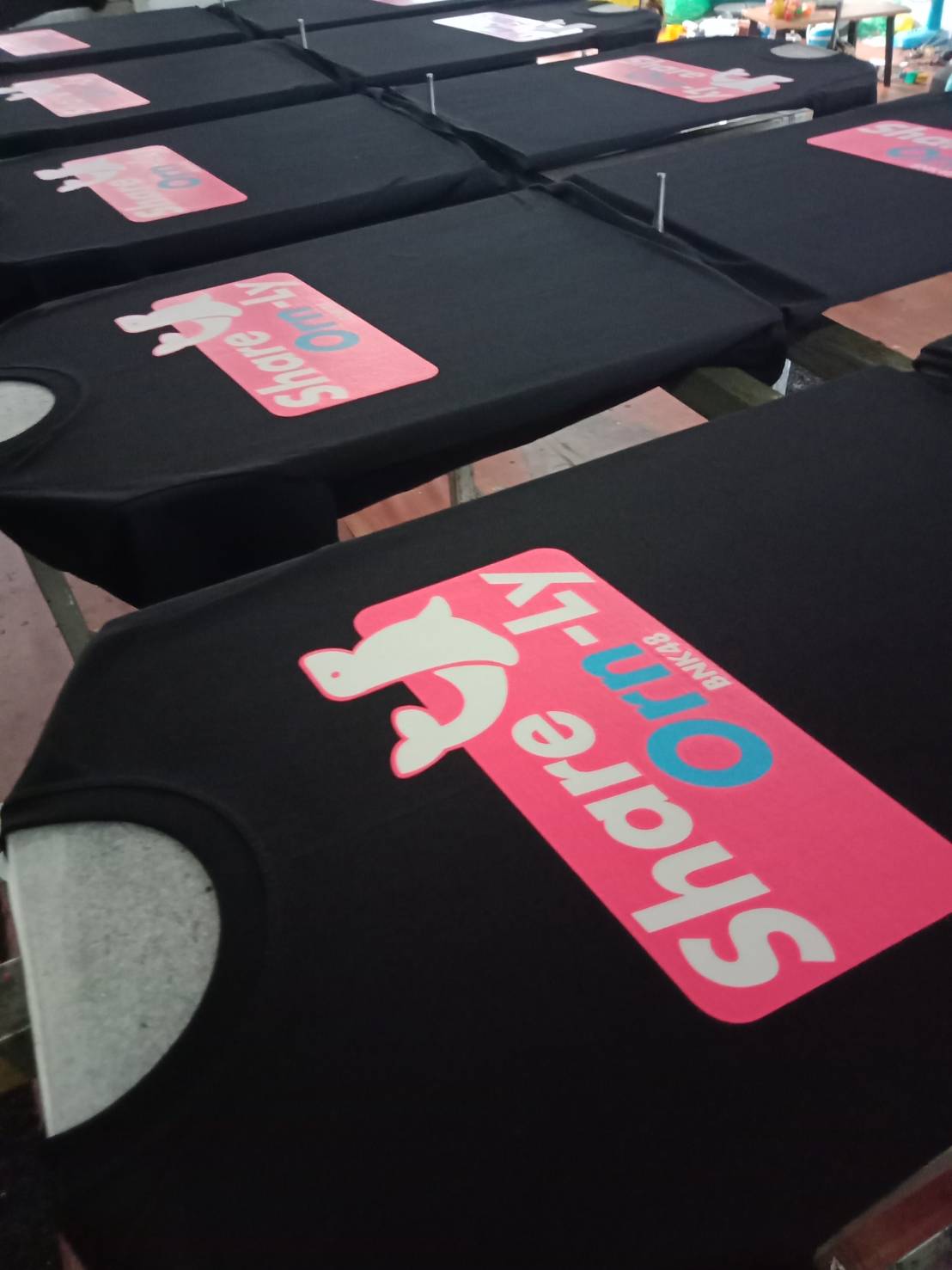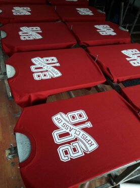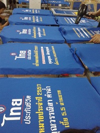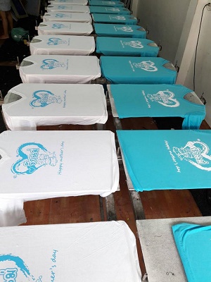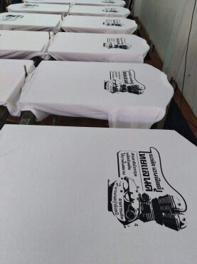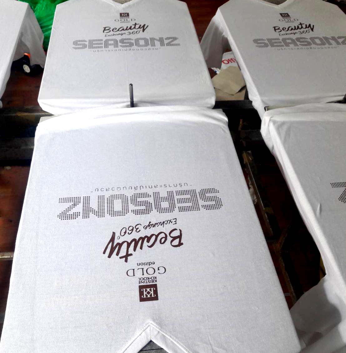 | งานซิลค์สกรีนเป็นงานที่ใช้บล็อกเป็นตัวทำลายตามแบบของลูกค้า เหมาะกับงานจำนวนมาก หากงานจำนวนน้อยจะส่งผลต่อราคาสกรีนต่อตัว ข้อดีคือสกรีนกับผ้าได้หลากหลายชนิด ราคาต่อตัวถูกกว่างานสกรีนประเภทอื่น แต่ทั้งนี้ขึ้นอยู่กับจำนวนผ้าและจำนวนสีตามแบบ ไม่มีขั้นต่ำในการสั่ง |  |